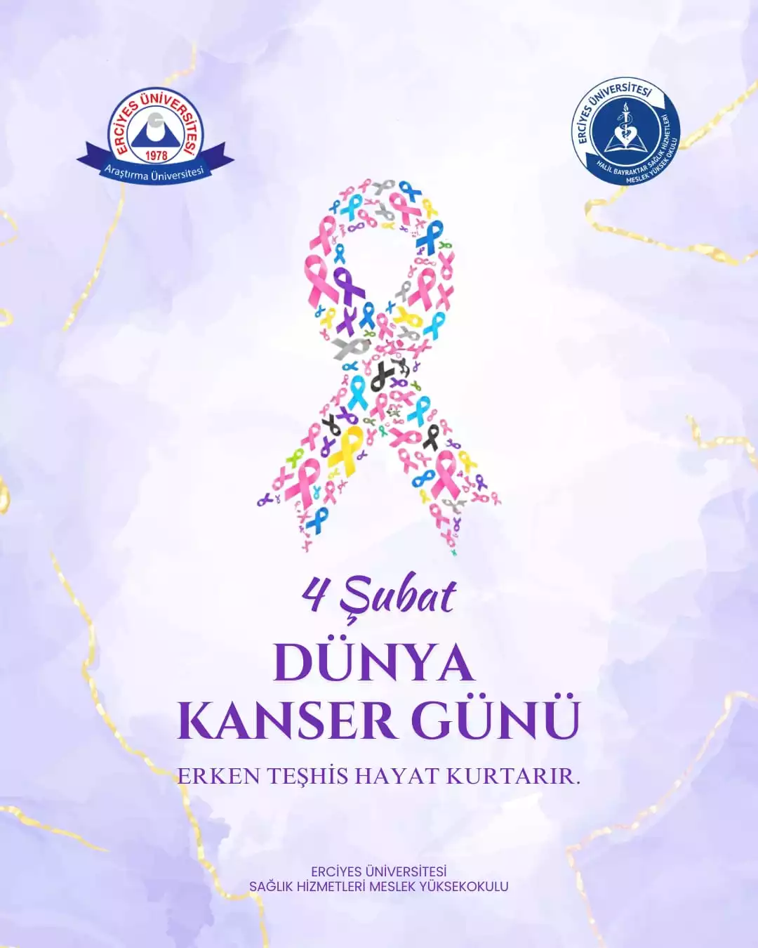 Erciyes Üniversitesi Halil Bayraktar Sağlık Hizmetleri Meslek Yüksekokulu olarak, Dünya Kanser Günü kapsamında toplum sağlığını korumaya yönelik farkındalık çalışmalarını destekliyor; tüm bireyleri kanser tarama programlarına katılmaya ve sağlık kontrollerini ihmal etmemeye davet ediyoruz.