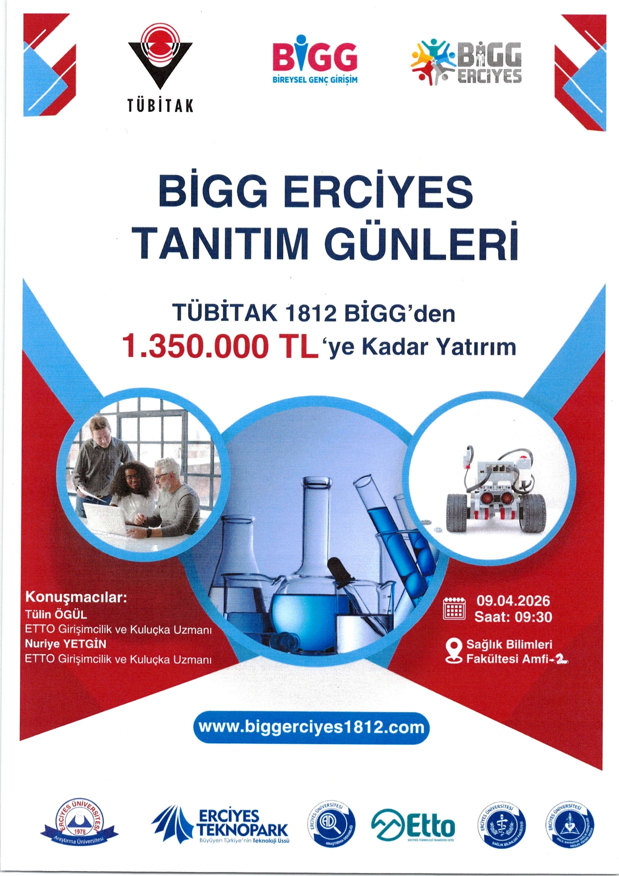 TÜBİTAK 1812 BİGG Programı kapsamında düzenlenen BİGG Erciyes Tanıtım Günleri, girişimcilik ekosistemine adım atmak isteyen tüm adayları bir araya getiriyor.