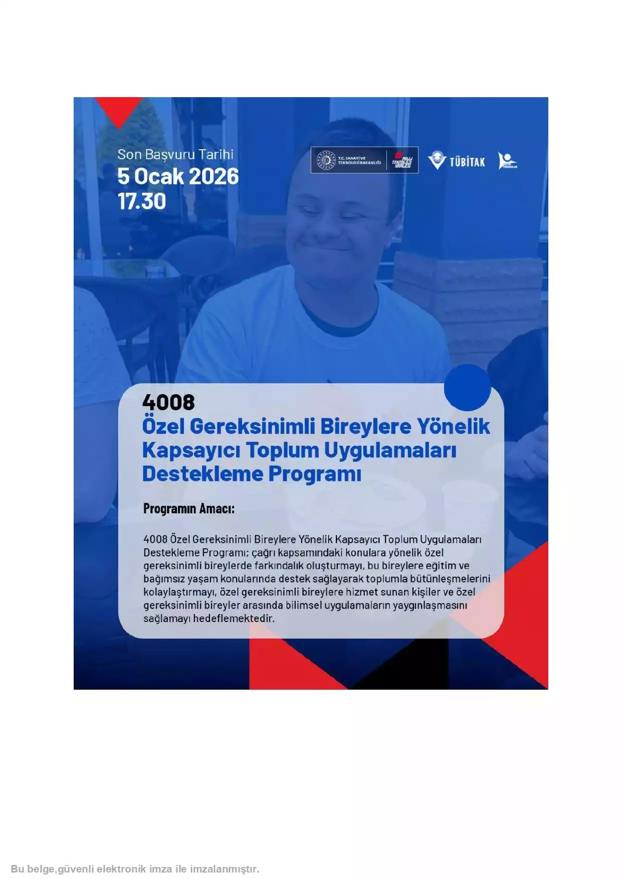 bünyesinde faaliyetlerine devam eden, 4008 Destekleme Programı 4. çağrısına 3 Aralık Dünya Engelliler