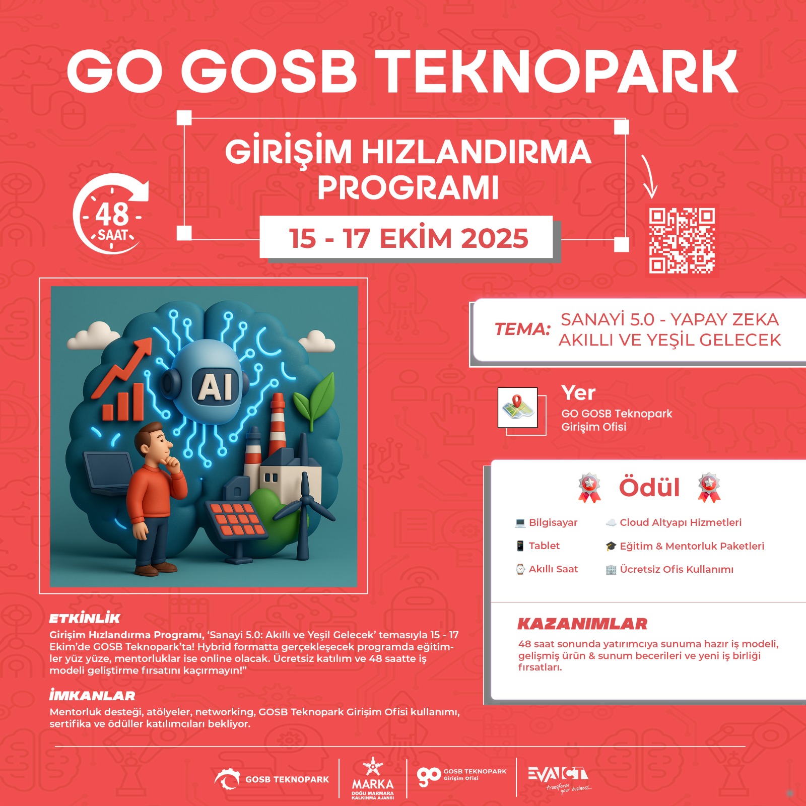 GO GOSB TEKNOPARK tarafından 15-17 Ekim tarihilerinde düzenlenecek olan ''Girişim Hızlandırma Programı'' düzenlenecektir.