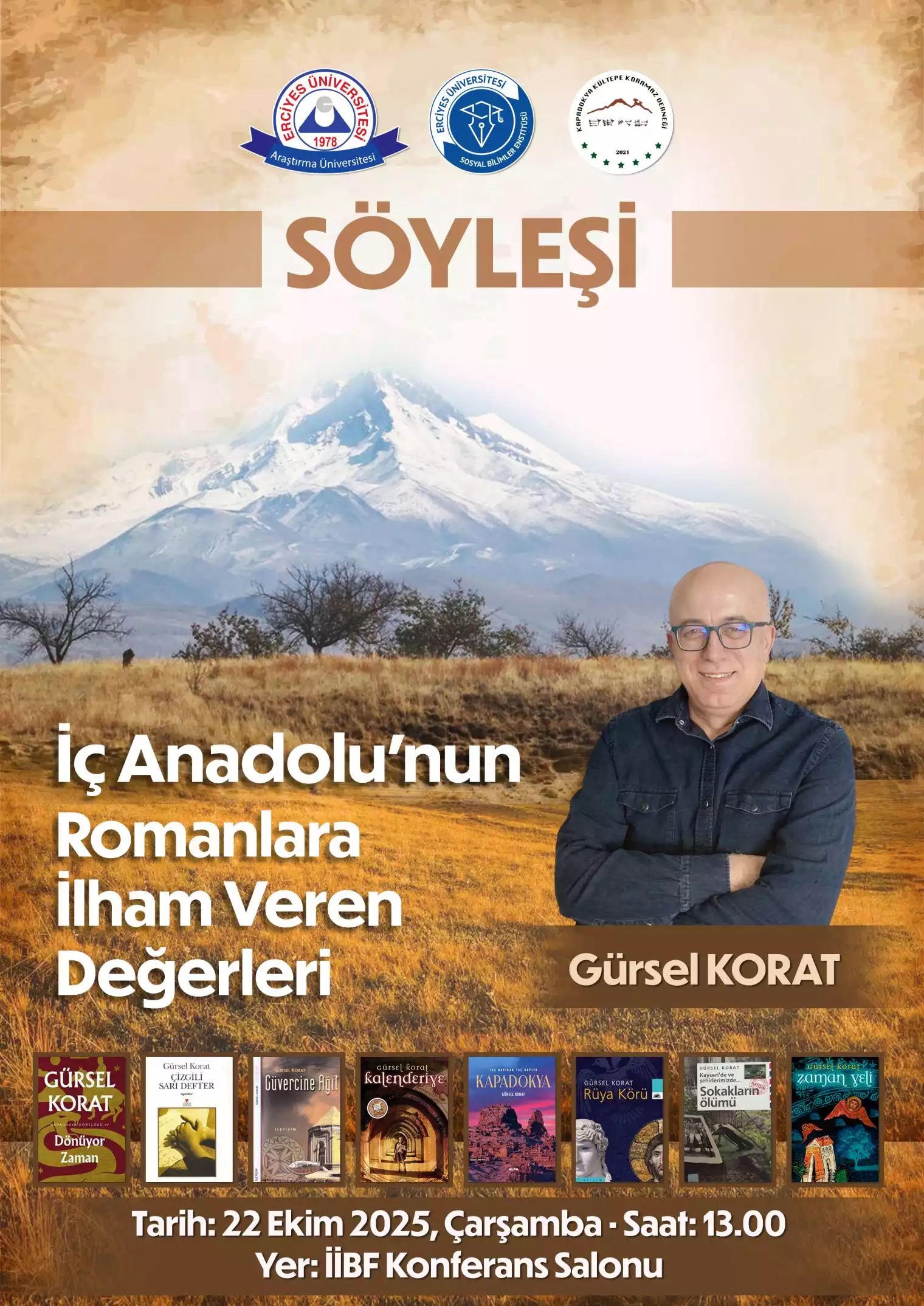 Edebiyatımızın önemli isimlerinden olan Korat, İç Anadolu’nun kültürel ve tarihsel birikiminin romanlara nasıl ilham verdiğini anlatacağı söyleşide, katılımcılarla bilgi ve deneyimlerini paylaşacak.