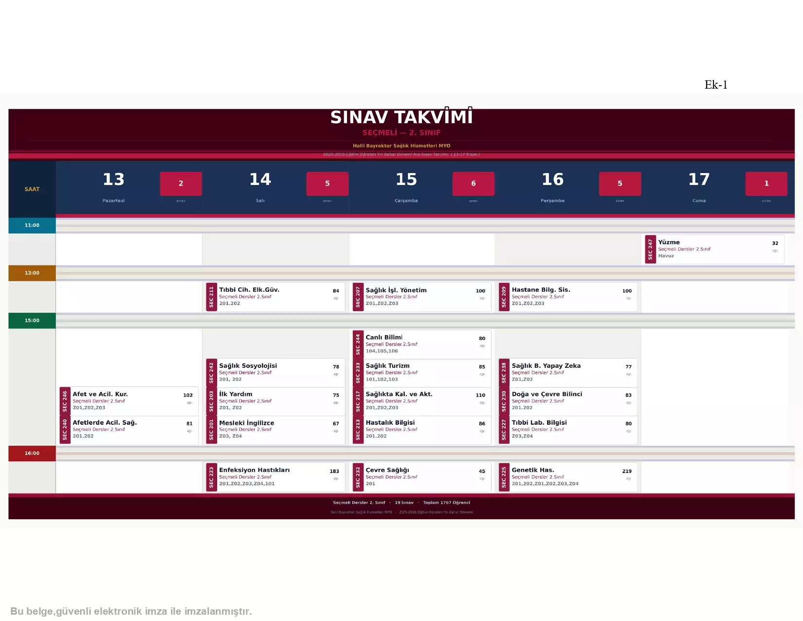 Meslek Yüksekokulumuz 2025-2026 Eğitim-Öğretim Yılı Bahar Yarıyılı Ara Sınav Programı Takvimi