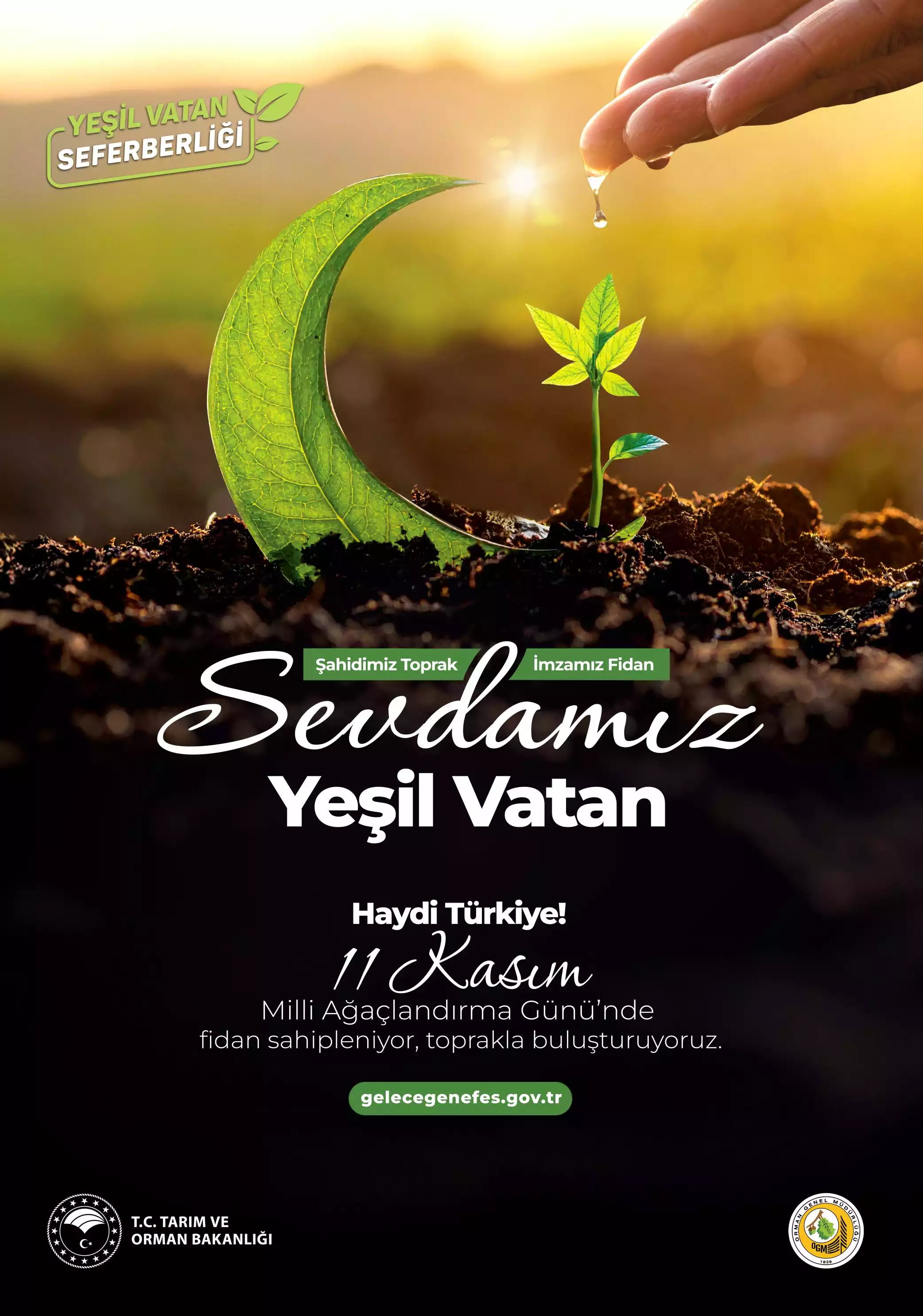 Cumhurbaşkanımız Sayın Recep Tayyip Erdoğan’ın himayelerinde, Orman Genel Müdürlüğü koordinasyonunda yürütülen “Geleceğe Nefes” kampanyası kapsamında, her yıl olduğu gibi bu yıl da 11 Kasım Milli Ağaçlandırma Günü'nde ülkemiz genelinde fidan dikim etkinlikleri düzenlenecektir.