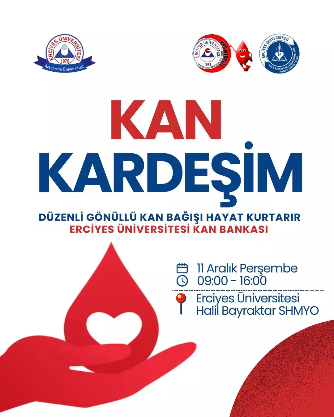 Erciyes Üniversitesi Kan Bankası iş birliğiyle kan bağışı etkinliğimiz gerçekleşiyor.
