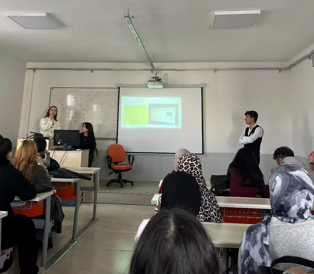 Etkinlikte konuşmacı olarak yer alan öğrenciler Sevim Sungur ve Kader Taşdemir, eğitim süreçleri, ders deneyimleri ve mesleki hedeflerine ilişkin bilgi ve tecrübelerini program öğrencileriyle paylaştı.